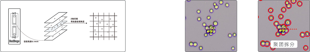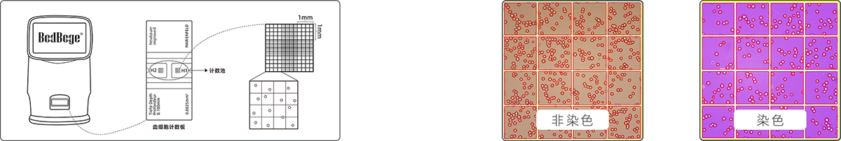 儀器內(nèi)置高倍數(shù)光學放大系統(tǒng)+千萬級彩色相機,讓細胞成像更清晰,可實時預(yù)覽細胞圖像;儀器參照“JJG 522-1988 血細胞計數(shù)板試行檢定規(guī)程”設(shè)計,實現(xiàn)血細胞計數(shù)板上機自動操作,濃度計算公式=(四個大方格細胞數(shù)之和)/4×104 (個細胞/mL),可人工復(fù)核計數(shù)結(jié)果。
