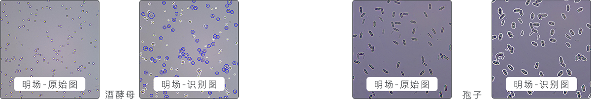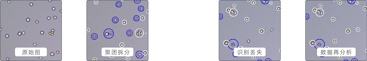 軟件可自動拆分聚團細胞,提高細胞計數準確性;對識別出現丟失的數據,可自定義軟件識別參數,對計數結果進行再識別分析(案例細胞圖為酒酵母)。