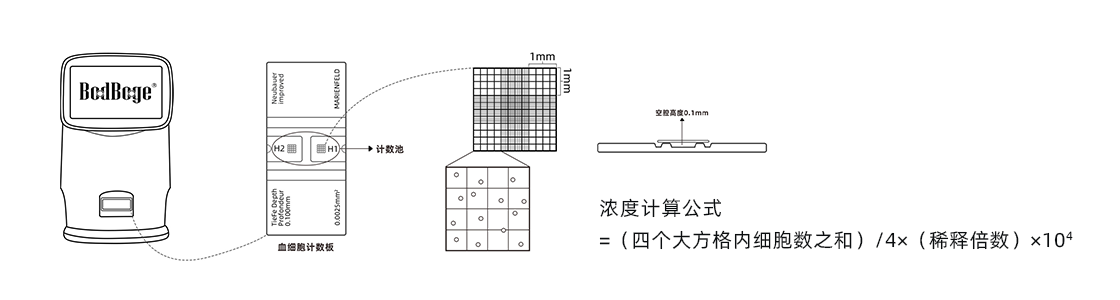 ·將加樣后的血細(xì)胞計(jì)數(shù)板放至細(xì)胞計(jì)數(shù)儀(JSY-SC-031H)的載物臺(tái)上,選擇對(duì)應(yīng)的計(jì)數(shù)模式,即可開始細(xì)胞計(jì)數(shù)分析(濃度計(jì)算公式=(四個(gè)大方格內(nèi)細(xì)胞數(shù)之和)/4×(稀釋倍數(shù))×104)。