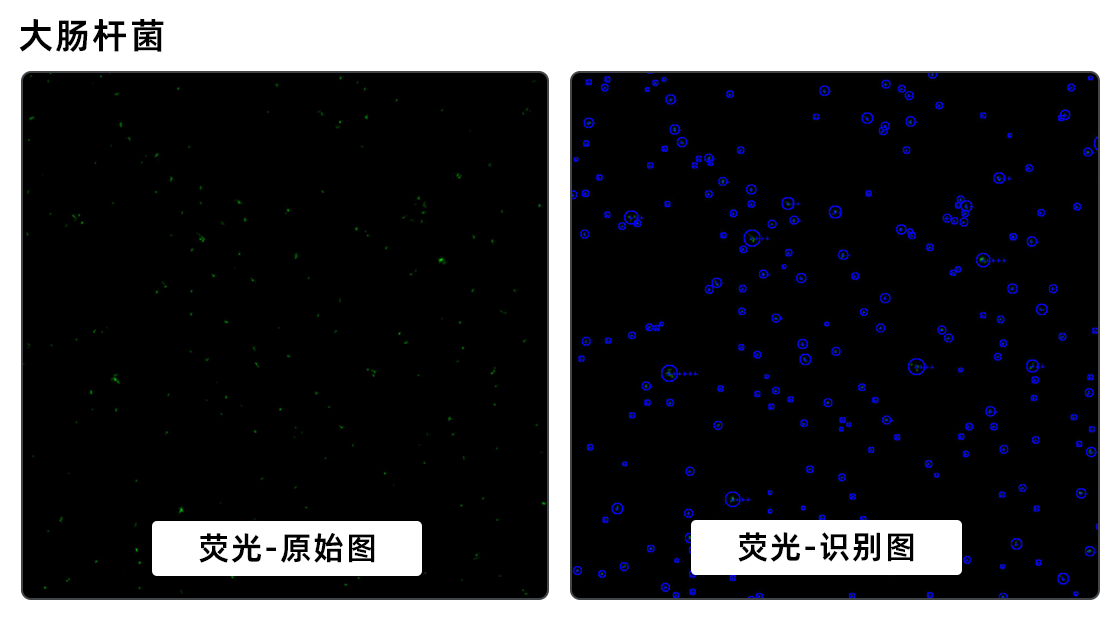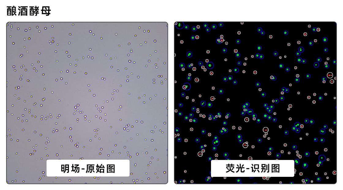 儀器配置明場(chǎng)+雙色熒光通道,采用熒光染色法計(jì)算活率,排除背景雜質(zhì)對(duì)目標(biāo)細(xì)胞的干擾,達(dá)到高效、直觀且精準(zhǔn)的微生物細(xì)胞計(jì)數(shù)。